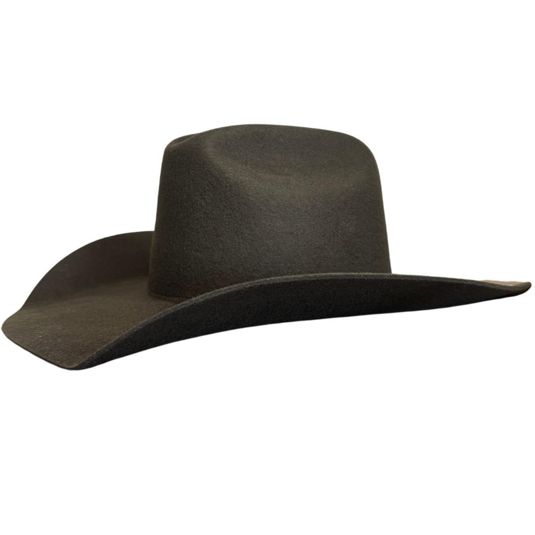 - Cattleman style cowboy hat with double ridge crown and curled up brim
