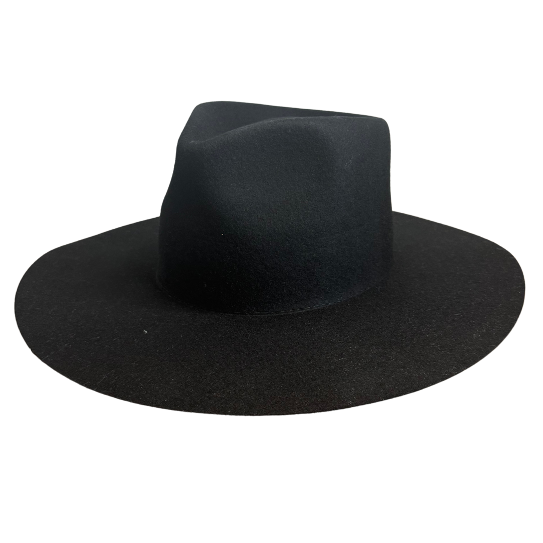 - Wide flat stiff brim fedora with a pointed crown