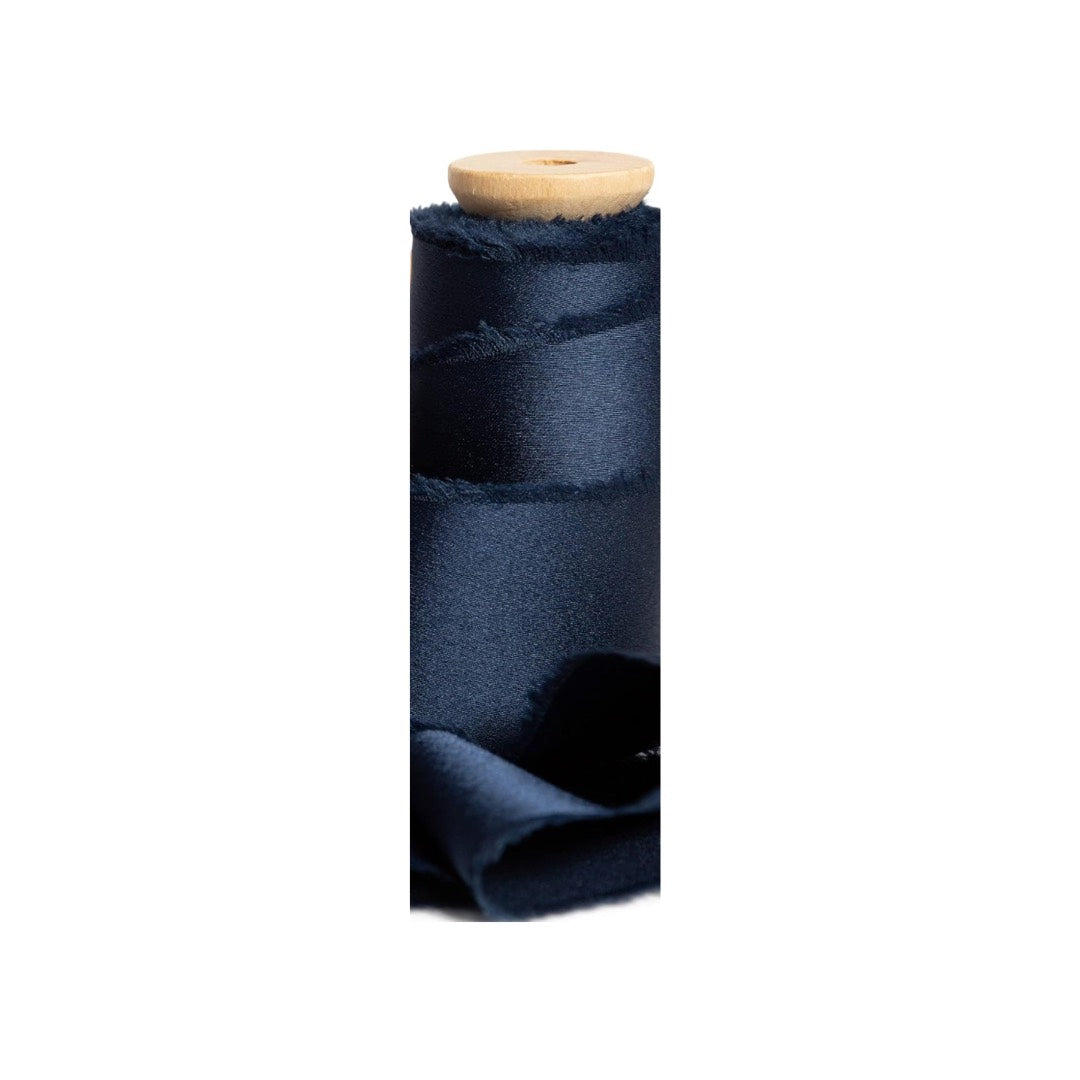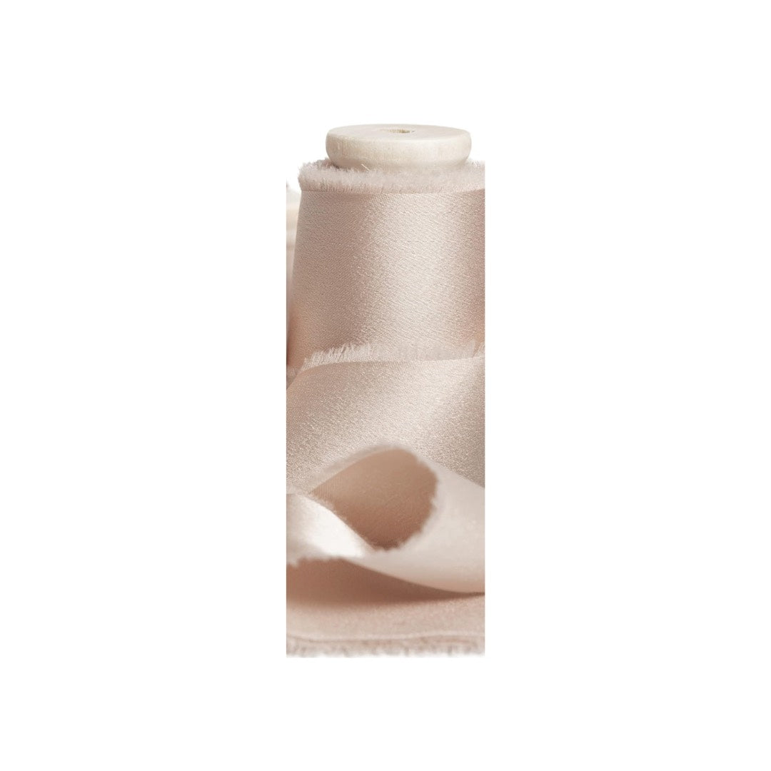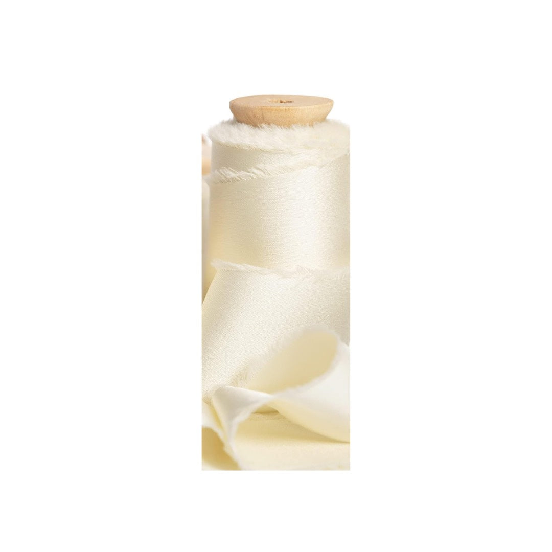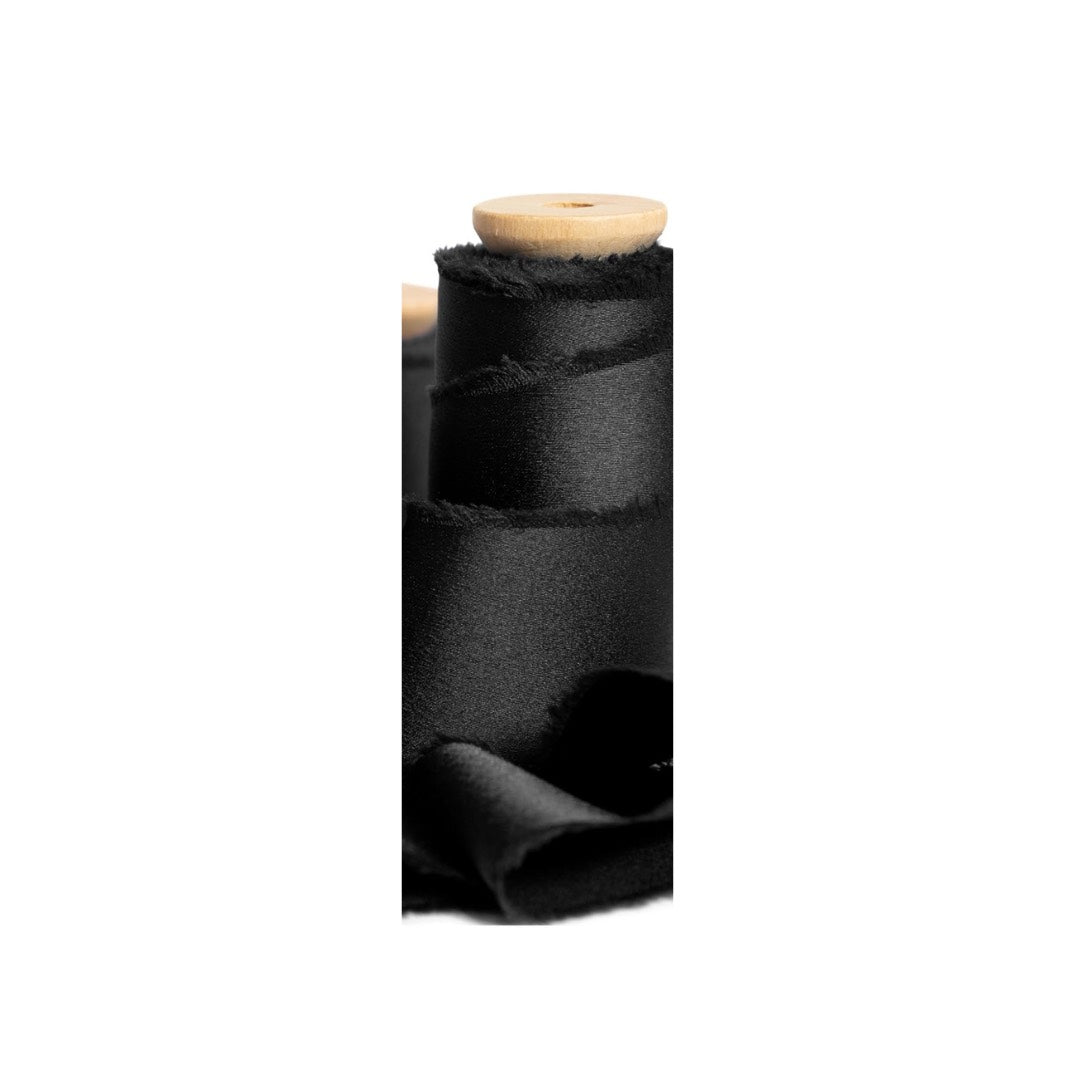 - Satin silk-like ribbon with frayed edges (100% polyester)