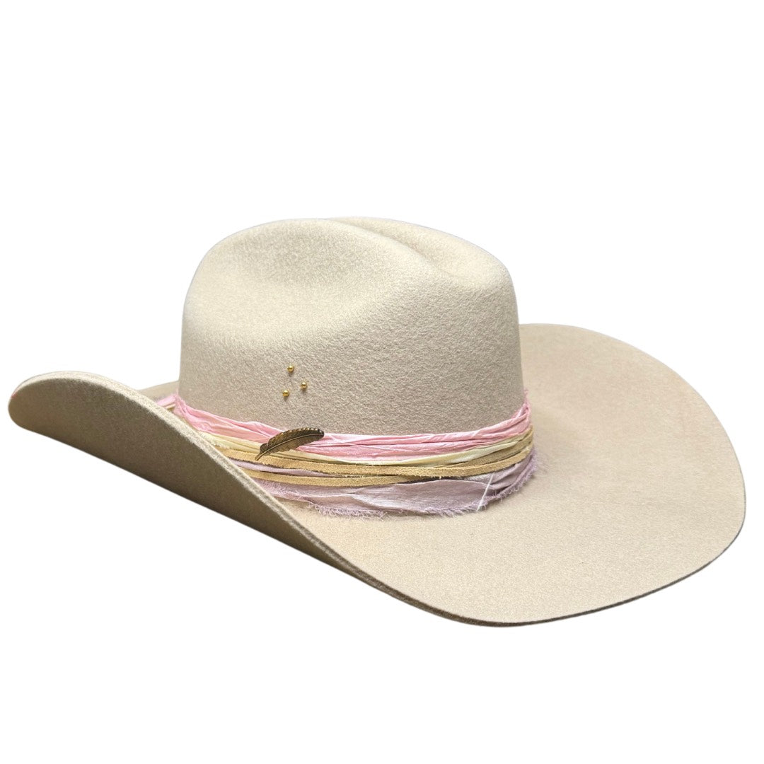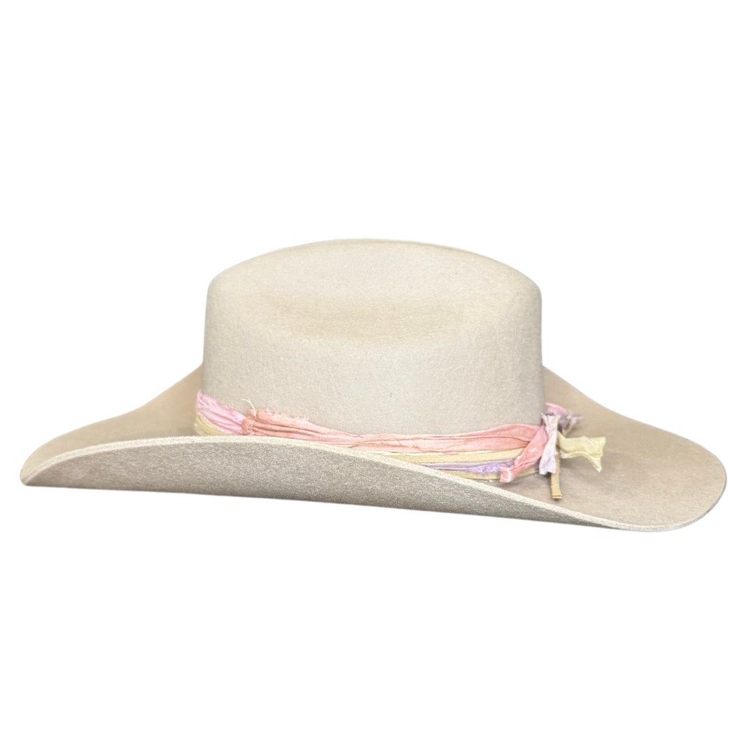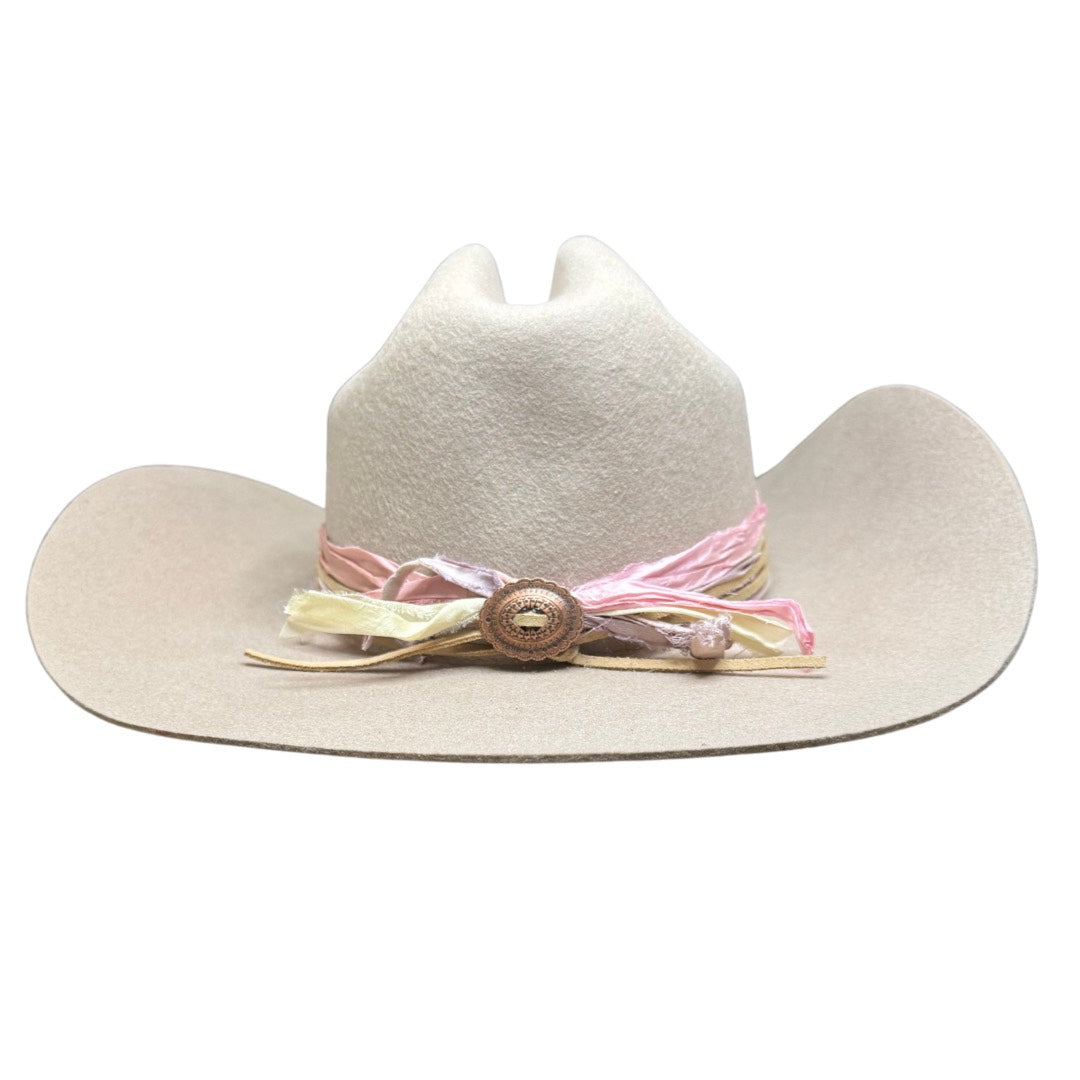 - Cattleman style cowboy hat with double ridge crown and curled up brim