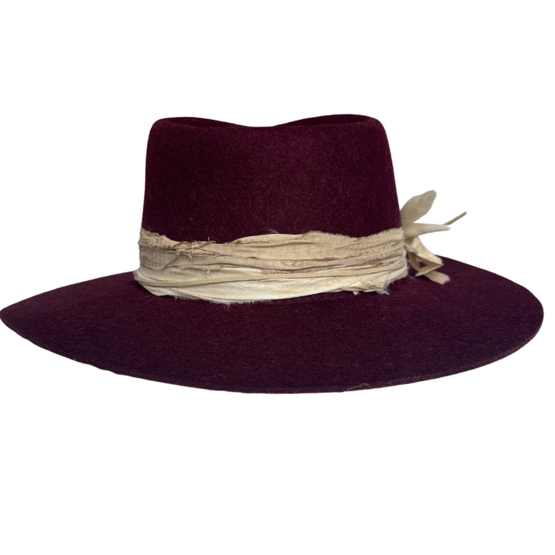 - Silk sari ribbon with one wrap beige, one wrap ivory, one wrap tan